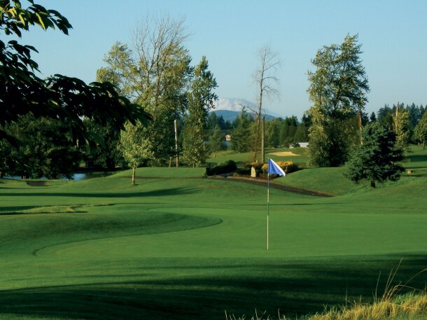 Situated at the base of a valley and surrounded by Mt. St. Helens, Mt. Adams and Mt. Hood, Tri-Mountain Golf Course offers a picturesque vista and unmatched natural beauty golfers will not soon forget.